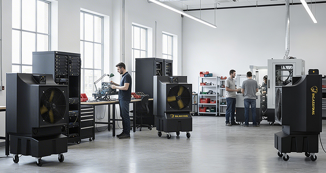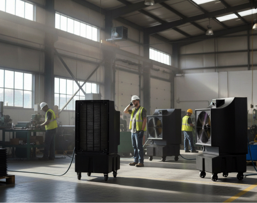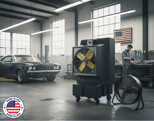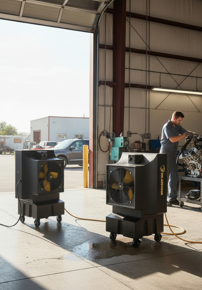 Ideal for warehouses, manufacturing floors, distribution centers, service bays, production facilities, outdoor events, stadiums, agricultural operations, and any large commercial or industrial space where energy-efficient spot cooling is required.