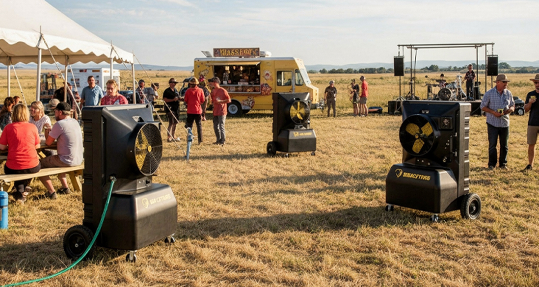 Reduces ambient temperatures by up to 33°F using water evaporation with no massive power draw—an eco-responsible approach producing fast spot cooling.