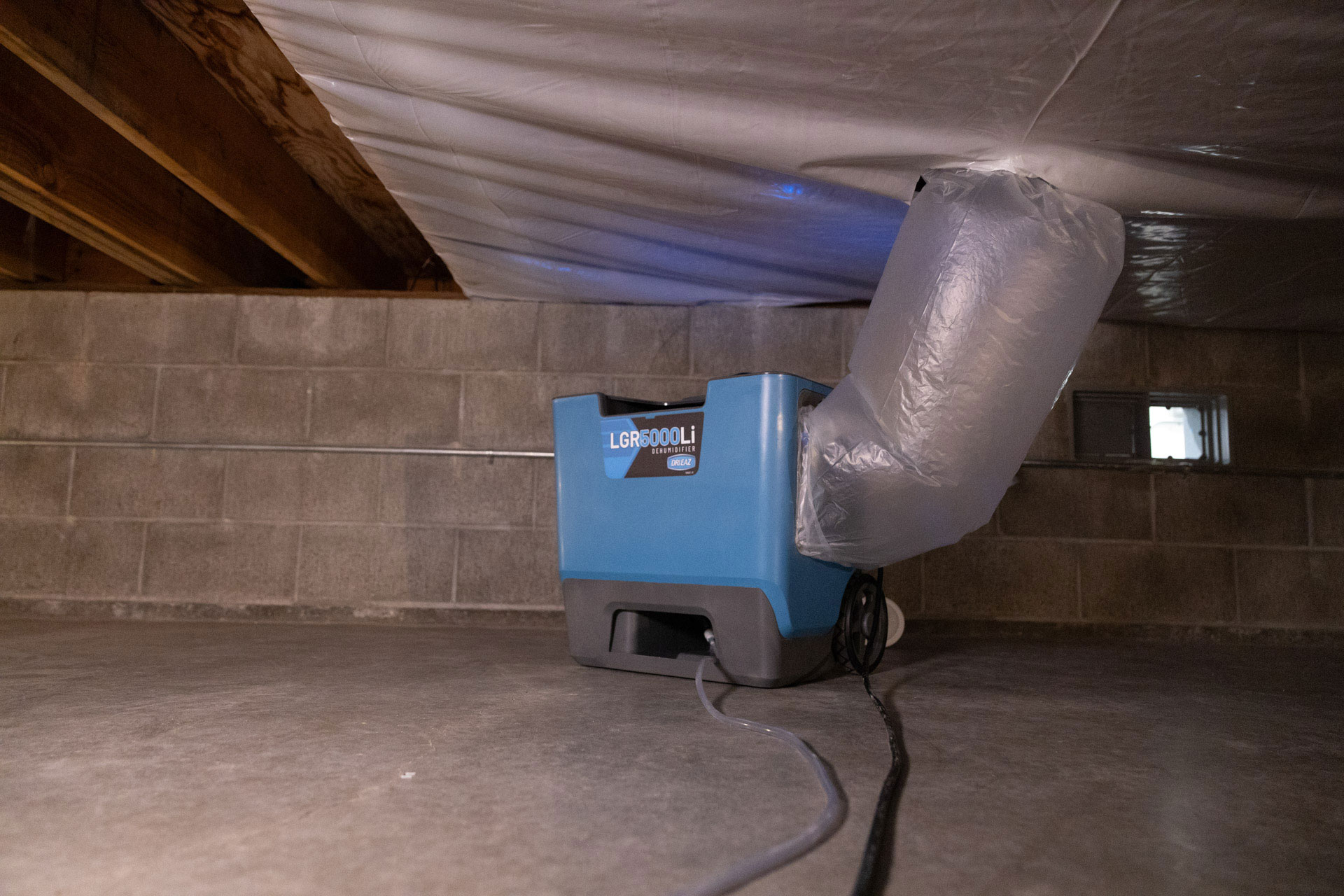Stack two of the new compact Dri-Eaz LGR 5000 commercial dehumidifiers to roll onto your next water damage restoration job to streamline the load in. With max water removal of 164 pints, the ultra-compact LGR 5000Li portable dehumidifier is the perfect size for most water damage restoration jobs. It's also amazingly quiet, lightweight and draws only 5 amps.