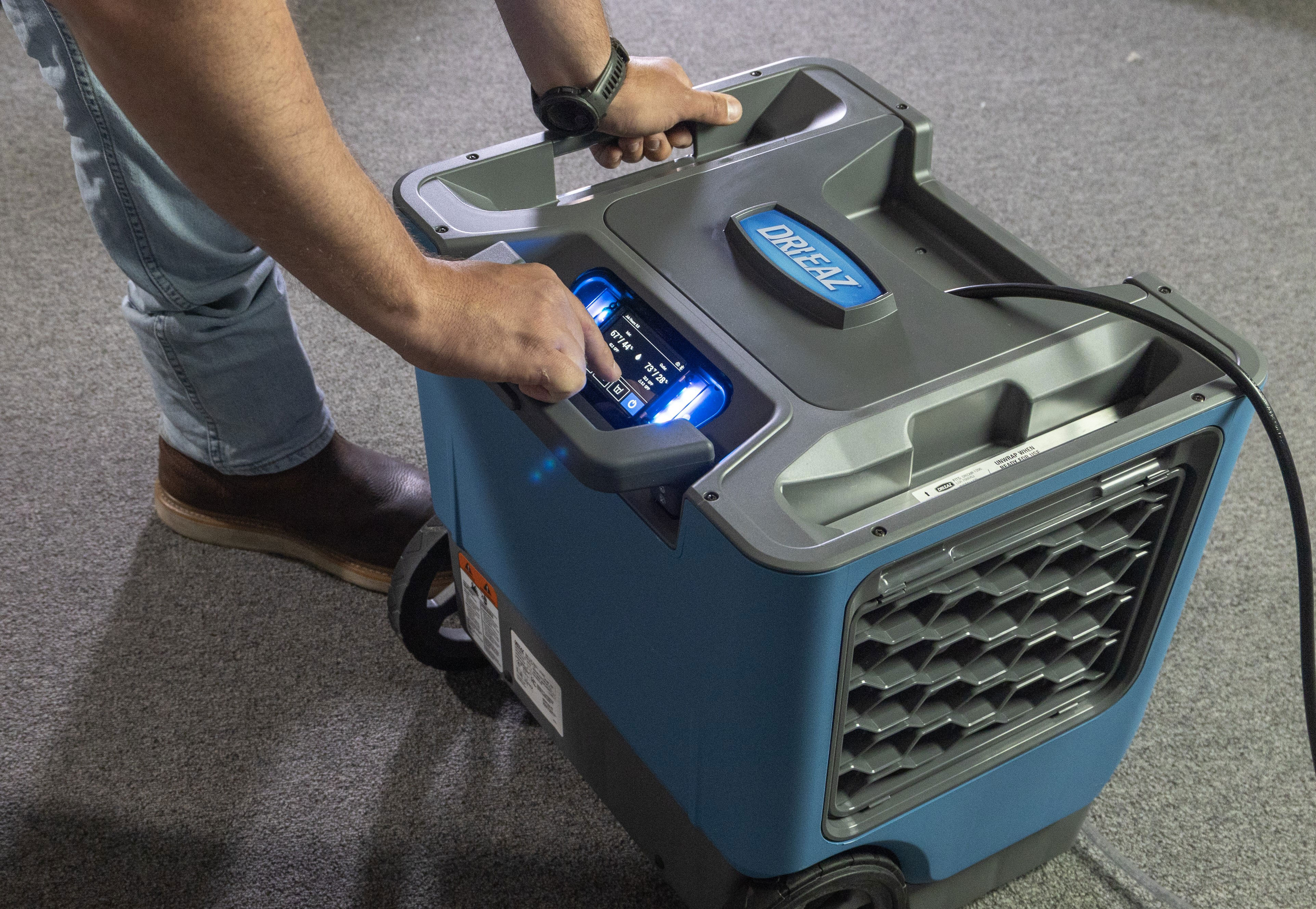 The LGR 5000 features a Bluetooth- and Wifi-enabled touchpad for monitoring drying progress, setting the humidistat when needed and tracking maintenance and filter change alerts. You can also remotely monitor and control the LGR 5000 using the Bluetooth- and wifi-enabled Command Hub for controlling the dehu and viewing jobsite conditions remotely using the Dri-Eaz Command Center Pro App and Dashboard - now available in the Apple Store and Google Play Store).