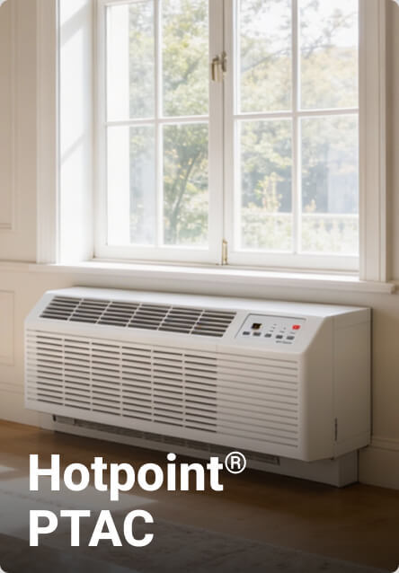 Hotpoint® PTAC units provide dependable heating and cooling for hospitality, multi-family, and light commercial applications where reliability and value matter most. Designed for straightforward operation and long-term performance, Hotpoint PTAC systems deliver consistent comfort without unnecessary complexity.