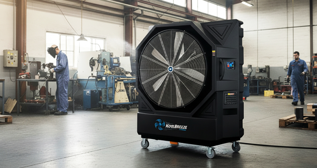KoolBreeze® by KwiKool evaporative coolers deliver powerful, energy-efficient spot cooling engineered for the most demanding commercial and industrial environments — from large retail floors, restaurant kitchens, and gym facilities to data centers, hotels, manufacturing plants, agricultural operations, greenhouses, foundries, power generation facilities, mining operations, and textile mills. KoolBreeze stands as a definitive choice in commercial and industrial evaporative cooling by merging raw airflow power with intelligent design and reliable performance — units engineered to deliver massive air volume ensuring rapid, effective cooling across the most demanding spaces