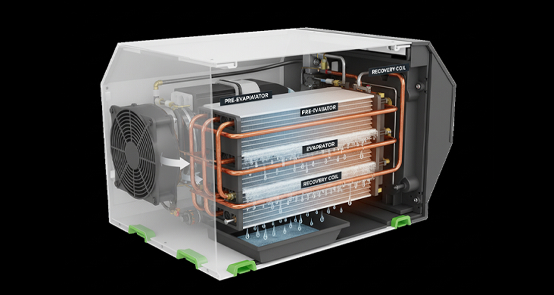 The only commercial dehumidifier line with multi-coil refrigeration recovery, delivering the highest pints-per-kWh performance available and a footprint over 20% smaller than comparable LGR technology.